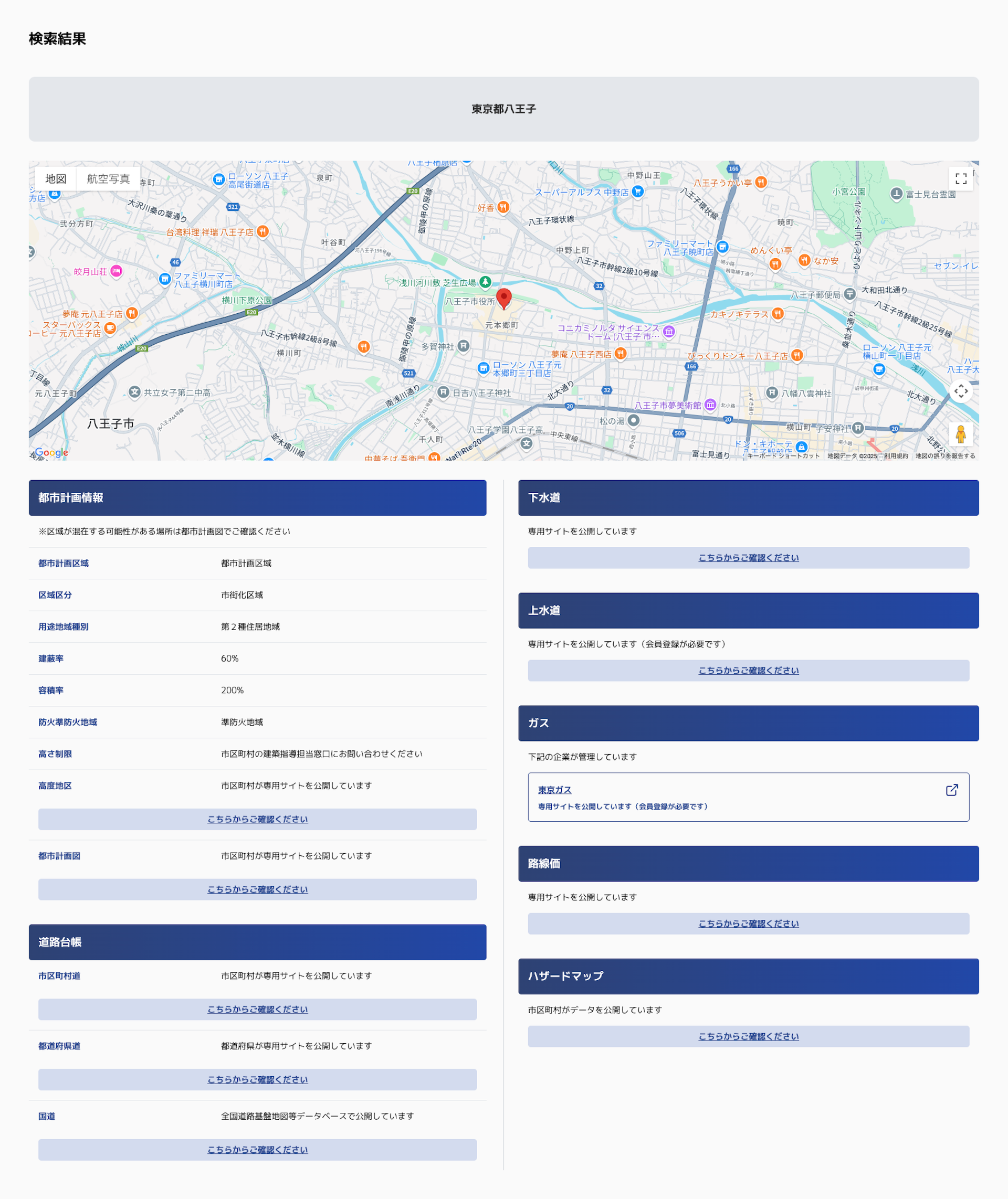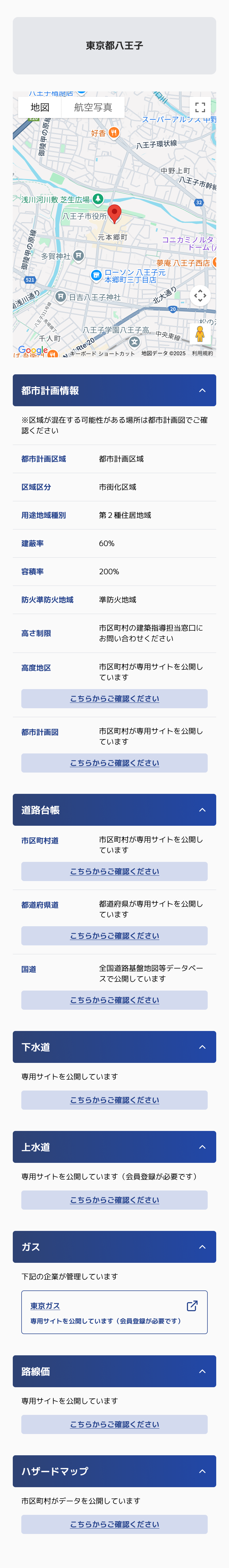 用途地域、建蔽率、容積率などを詳細表示